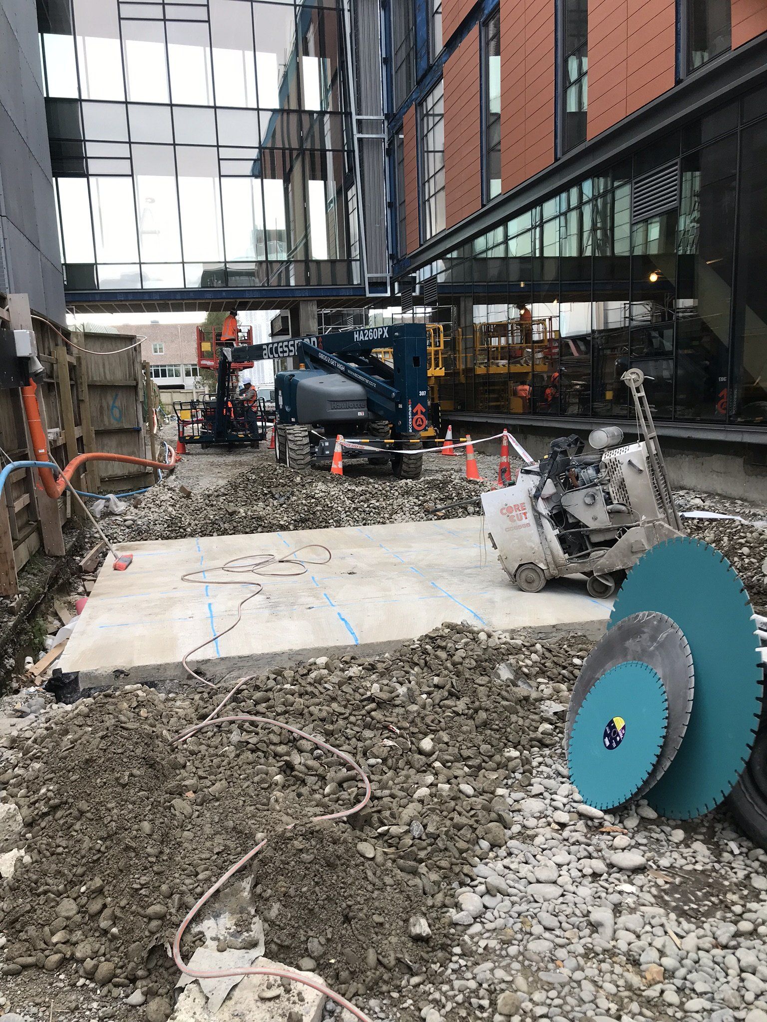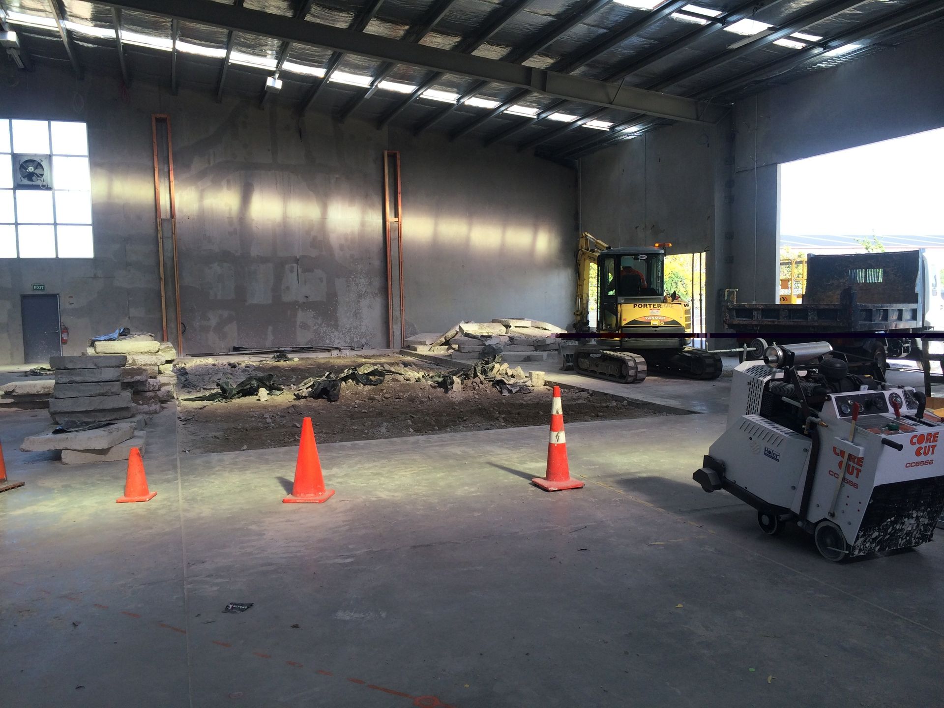 Concrete slab to cut and remove. Use of our 66hp Floorsaw.