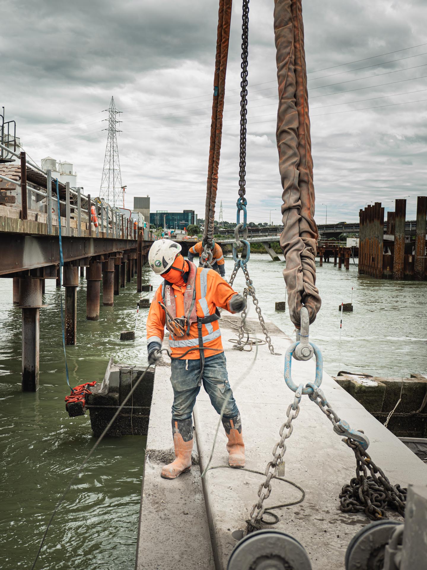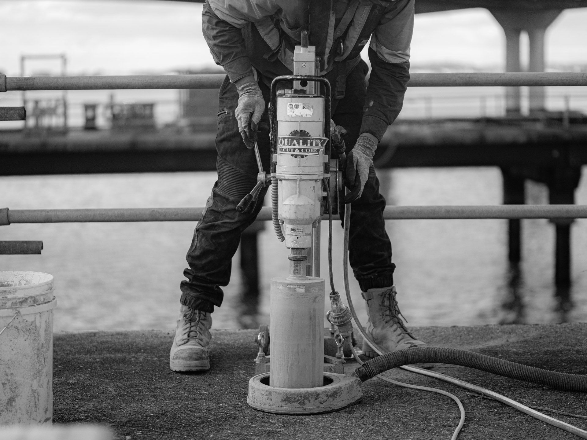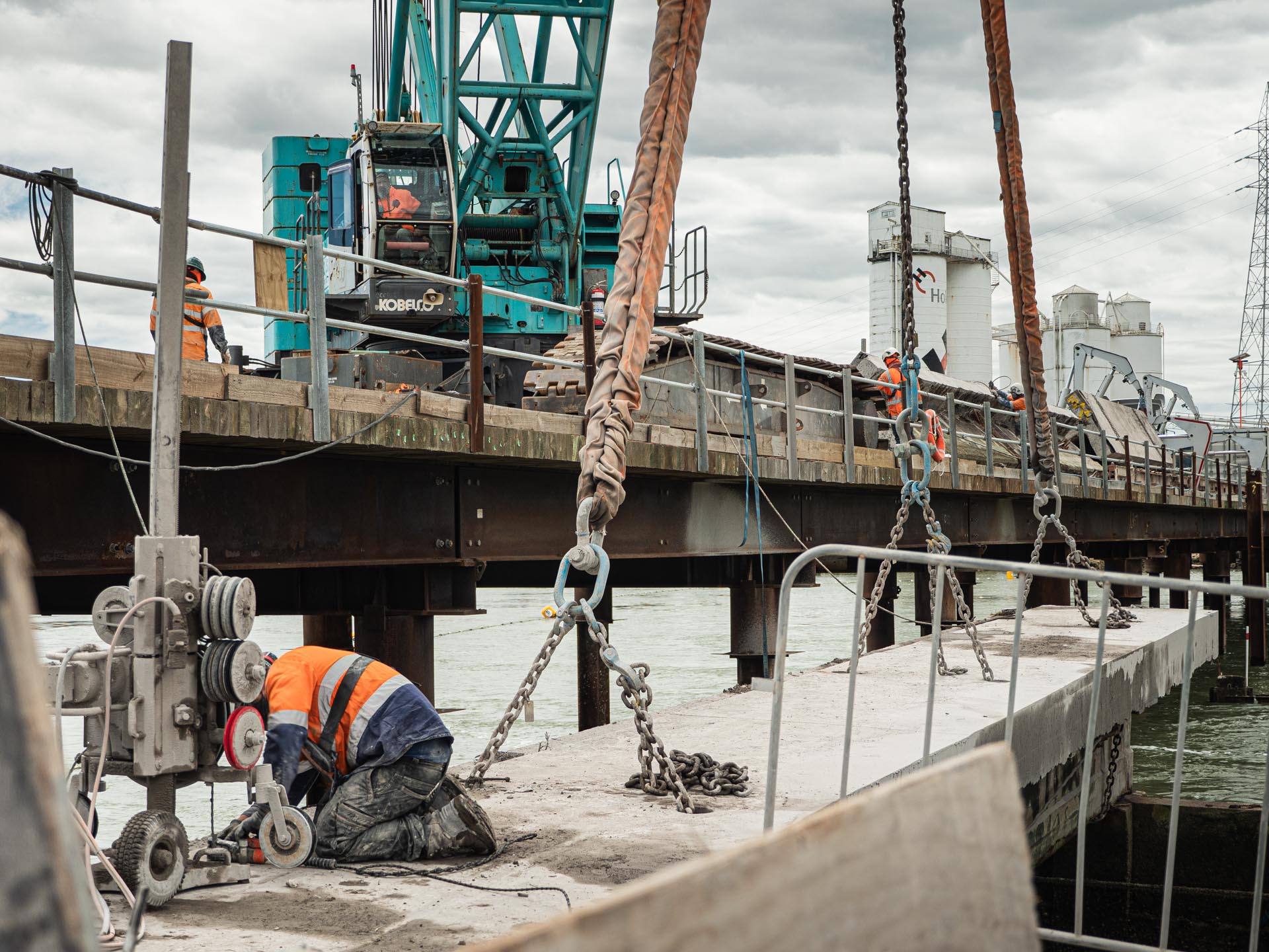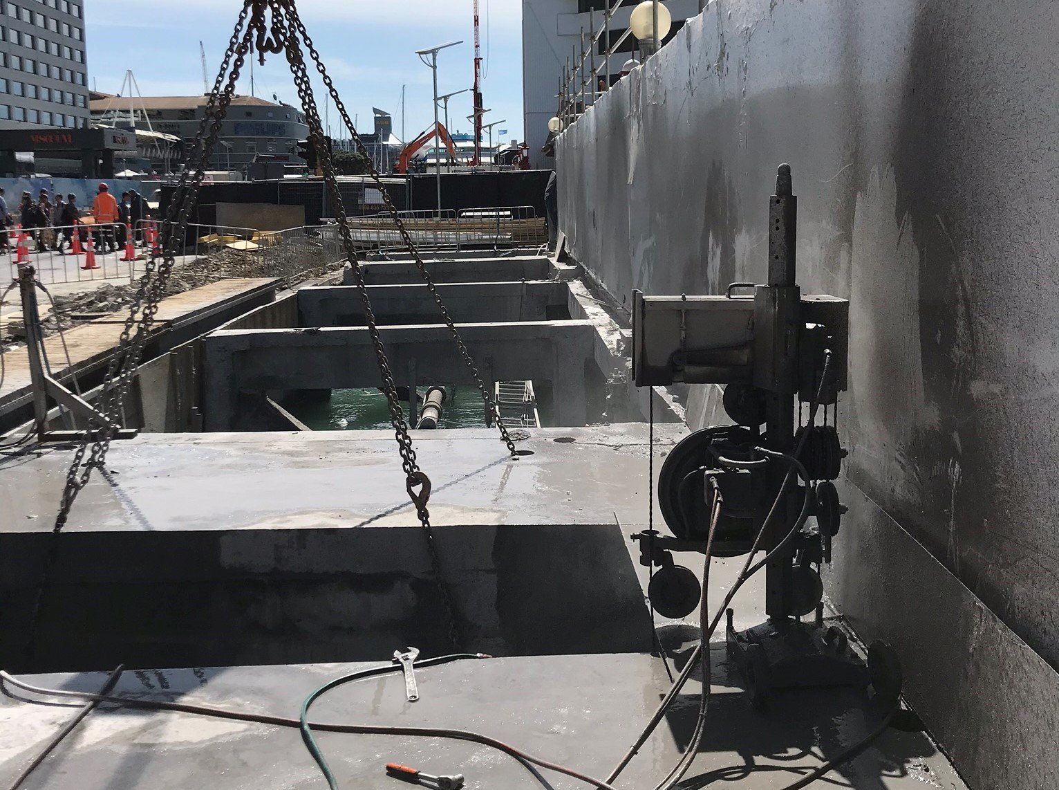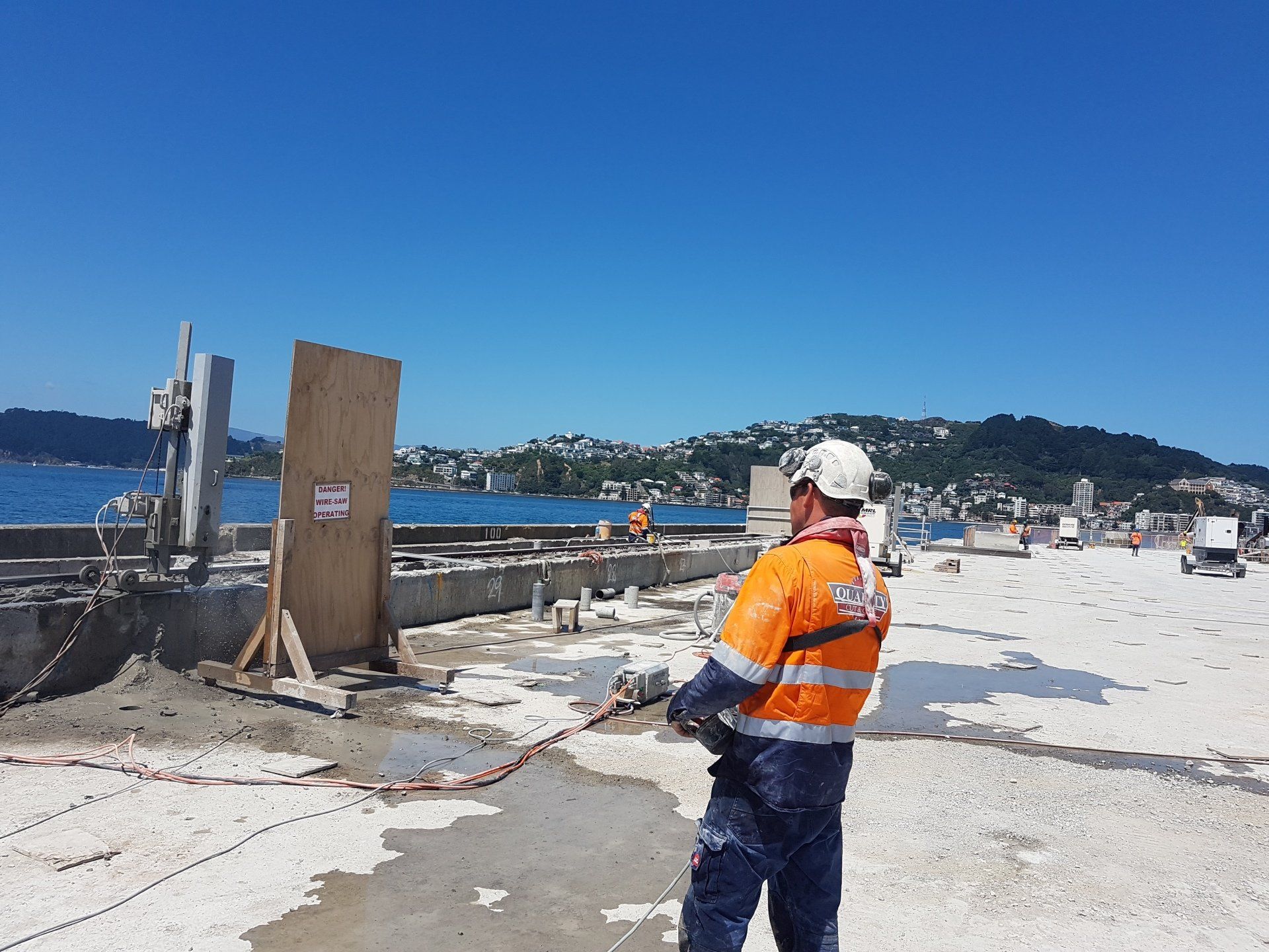 Wire Sawing concrete deck at Queens Wharf, Auckland Downtown.
