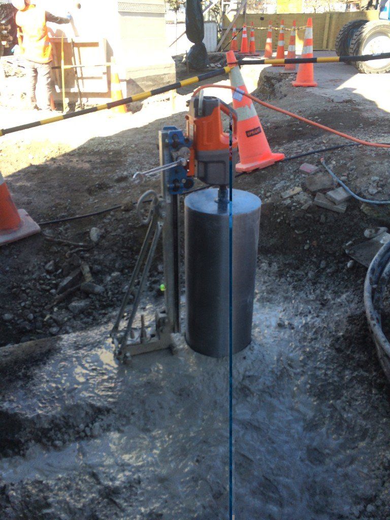 Core drilling 350mm diameter core holes through heritage foundation to allow for mini piles