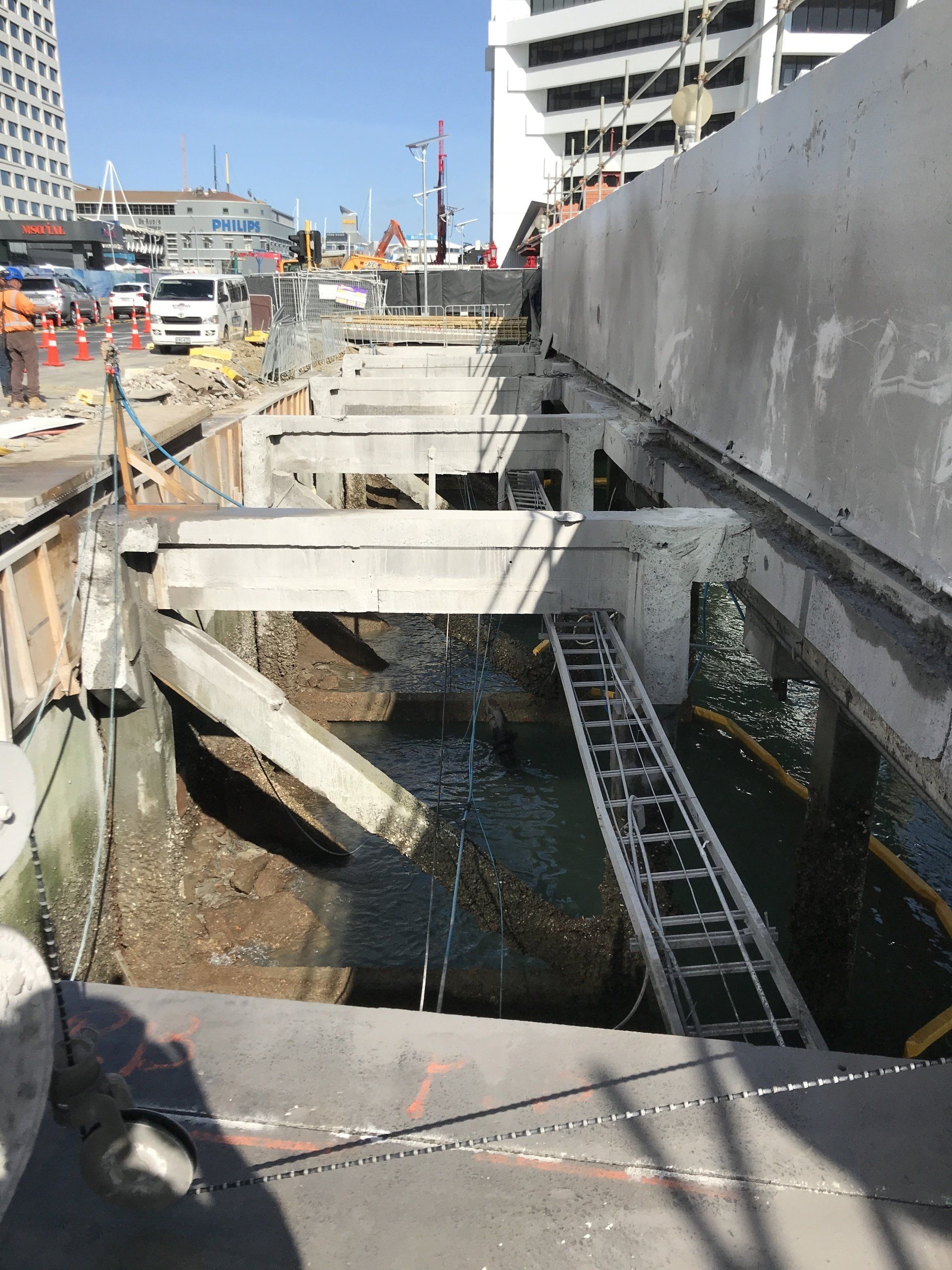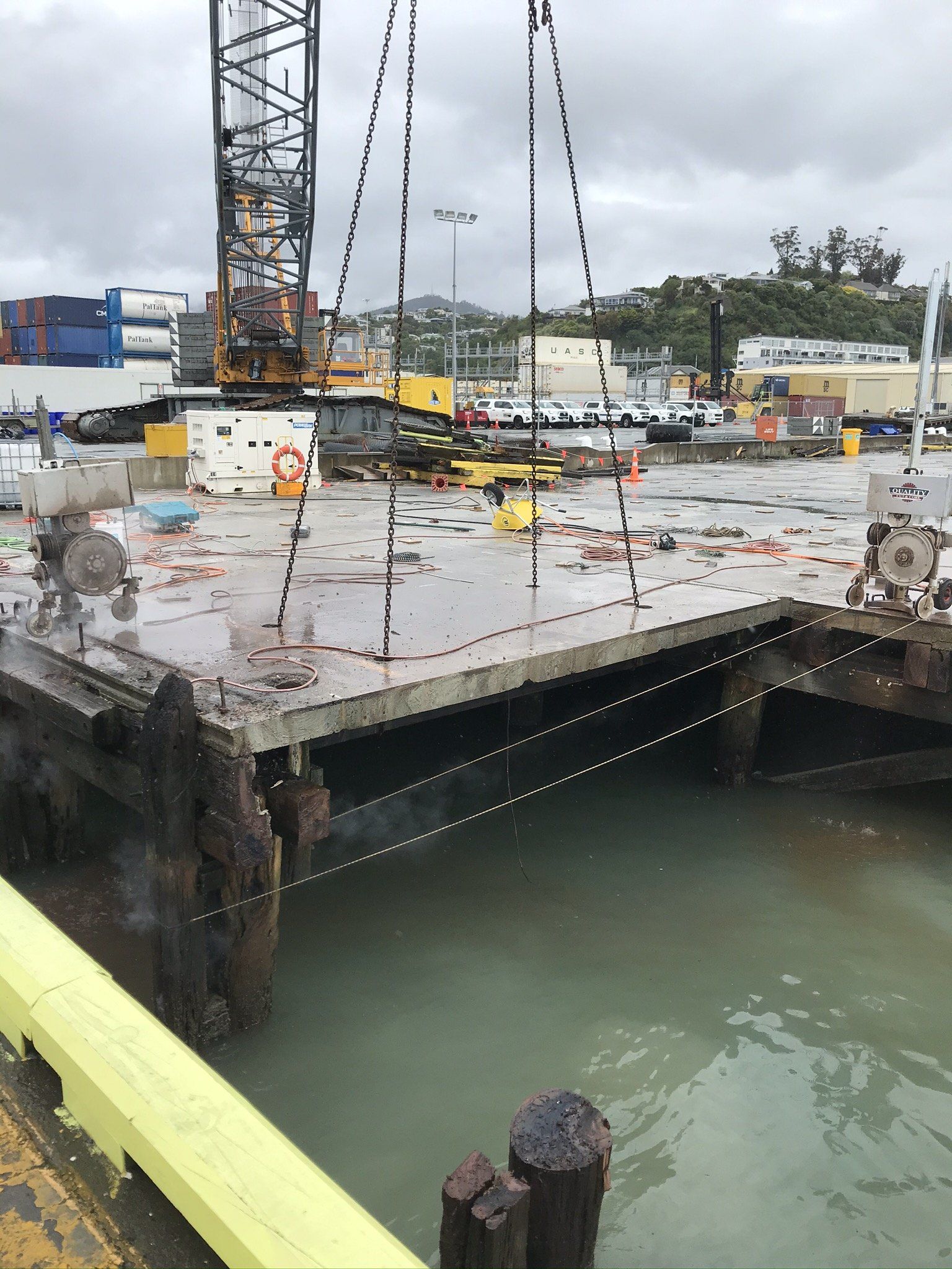 Aim: To deconstruct a 50m x 5m pedestrian concrete wharf at the Downtown Ferry Basin Redevelopment site while allowing pedestrian access and traffic flow to continue within a close proximity.