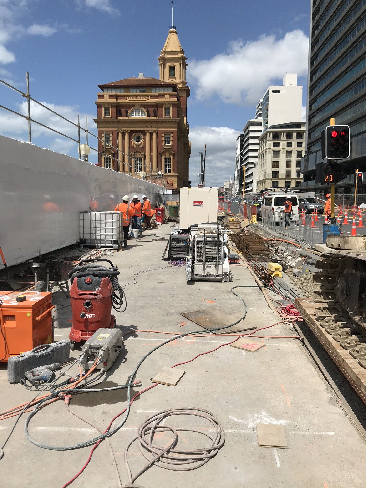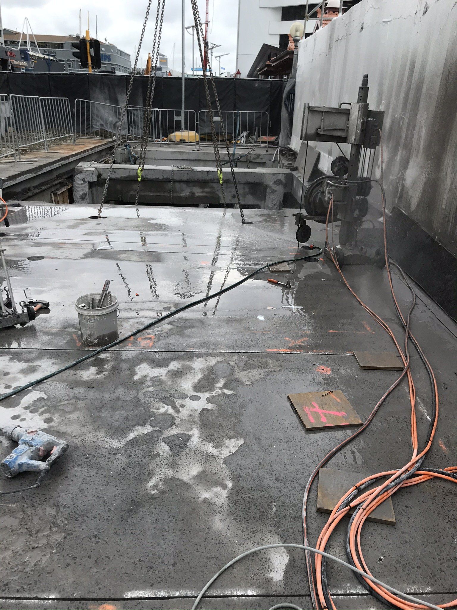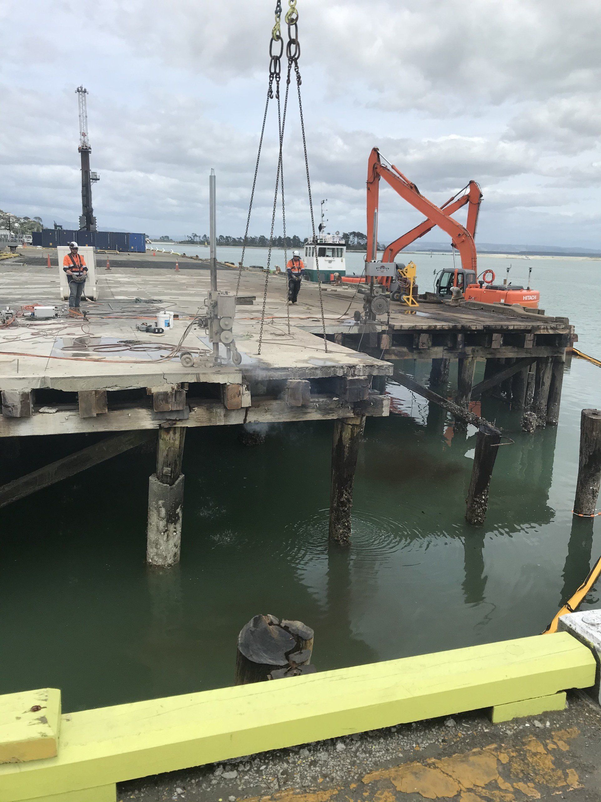 The 250m2 section of wharf was located within very close proximity to both traffic on Quay Street, and pedestrians using the adjoining wharf for the Ferry Terminal and access-way. This placed restrictions on cutting techniques and methodology for removal of the concrete. The concrete wharf needed to be cut and craned directly onto a truck for disposal, as there was very little room onsite to stockpile. There were also restrictions on noise levels.